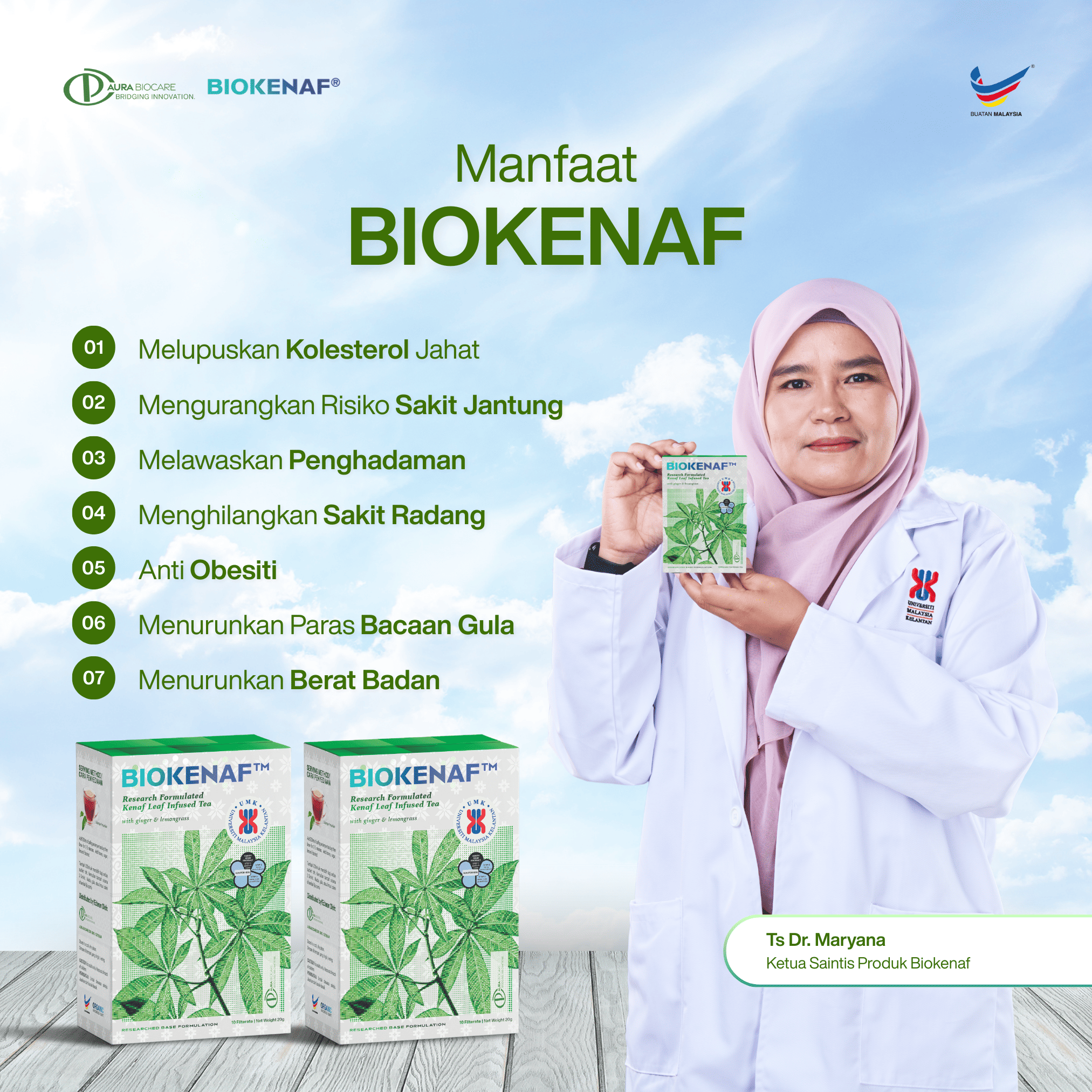 Biokenaf® diformulasi dari bahan semulajadi, 100% Organik tanpa bahan pengawet & telah menjalani ujian makmal ke atas sel hati memastikan keselamatan produk.